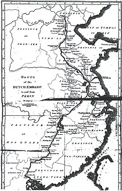 - ↑ van Braam Houckgeest, Andreas Everardus. (1797). Voyage de l'ambassade de la Compagnie des Indes Orientales hollandaises vers l'empereur de la Chine, dans les années 1794 et 1795; see also 1798 English translation: An authentic account of the embassy of the Dutch East-India company, to the court of the emperor of China, in the years 1974 and 1795, Vol. I. Archivováno 15. 2. 2009 na Wayback Machine.