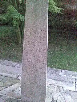 Při pokusu o prvovýstup na Mount Everest on a jeho horolezecký partner George Mallory zmizeli vysoko na severovýchodním hřebeni hory. Dvojice byla naposledy spatřena živá několik set metrů od vrcholu a není známo, zda jeden nebo oba před svou smrtí vrcholu dosáhli. Malloryho tělo bylo nalezeno v roce 1999, část Irvineova těla až v září 2024.[2]