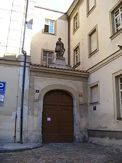 Nad vjezdem z Anenského náměstí č. 948/3 se nachází socha sv. Vavřince od Jana Antonína Quitainera vytvořená kolem roku 1750.