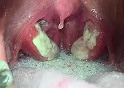 - ↑ Tonsillitis [online]. [cit. 2016-08-04]. Dostupné v archivu pořízeném z originálu dne 25 March 2016.
