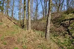 V dubnu 2004 bylo zjištěno narušení terénu na severovýchodní straně hradního jádra, z něhož bylo získáno 25 keramických zlomků z přelomu 13. a 14. století. V narušení byla patrná lícovaná zeď stejného charakteru jako u zemnice v předním hradě. U té došlo mezi lety 1975 a 2009 k destrukcím zdiva, v jejichž důsledku se stěny zemnice snížily až o polovinu.[9]