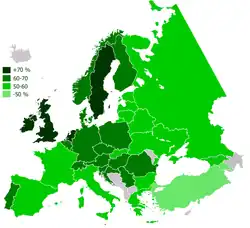 - primární – Spojené království (de facto), Spojené státy (de facto, de iure na úrovni některých států), Austrálie (de facto), Nový Zéland, Antigua a Barbuda, Bahamy, Barbados, Bermudy, Dominika, Gibraltar, Grenada, Guyana, Jamajka, Kanada, Svatá Lucie, Svatý Kryštof a Nevis, Svatý Vincenc a Grenadiny, Trinidad a Tobago, jeden ze 6 jazyků OSN