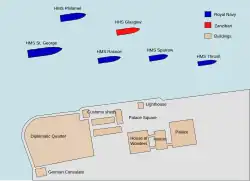 Bargash se odmítl vzdát trůnu a místo toho shromáždil armádu o 2800 mužích a v přístavu zakotvil ozbrojenou jachtu HHS Glasgow bývalého sultána. Zatímco Bargashovy jednotky opevňovaly palác, královské námořnictvo shromáždilo v přístavu před palácem pět válečných lodí (tři moderní křižníky – pancéřový křižník třídy Edgar HMS St George, chráněný křižník třídy Pearl HMS Philomel, křižník třídy Archer HMS Racoon a dva dělové čluny HMS Thrush a HMS Sparrow). Britové také vylodili několik jednotek námořní pěchoty, aby podporovaly „loajální“ pravidelnou zanzibarskou armádu, která čítala 900 mužů ve dvou praporech pod velením generála Lloyda Mathewse, bývalého poručíka královského námořnictva.