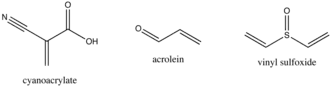 Druhou skupinou jsou akrylátové estery, jako akrylonitril, methakryláty, kyanoakryláty a akrolein.