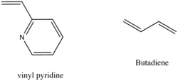 Vinylové monomery mají obecný vzorec CH2=CHR, nejvýznamnější z nich jsou styren (C6H5-CH=CH2), buta-1,3-dien (CH2=CH-CH=CH2) a isopren (CH2=C(CH3)CH=CH2). Patří sem také vinylpyridin, vinylsulfony, vinylsulfoxidy a vinylsilany.[2]