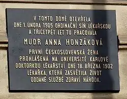 - ↑ Stala se první promovanou lékařkou u nás. Vyměnila rodinu za ordinaci. Osudové ženy: Anna Honzáková [online]. [cit. 2020-11-05]. Dostupné online.