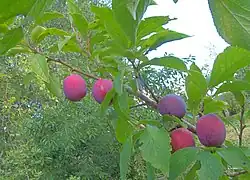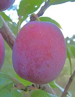 Plod je malý až středně velký. Slupka plodu je fialová, ojíněná, dužnina jde špatně od pecky. Dužnina je žlutavě zelená, při plném vyzrání až velmi sladká, aromatická, velmi dobrá. [1]