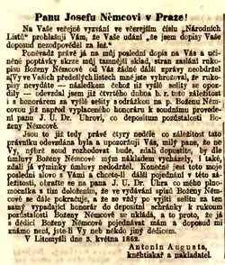 - ↑ Dopis psal Jan Neruda, je Augustou pouze podepsán.