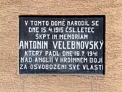 - Na rodném domě v Jablunkově byla Antonínu Velebnovskému v roce 1947 odhalena pamětní deska[1], u pomníčku na místním hřbitově je uložena prsť ze hřbitova v Chichesteru