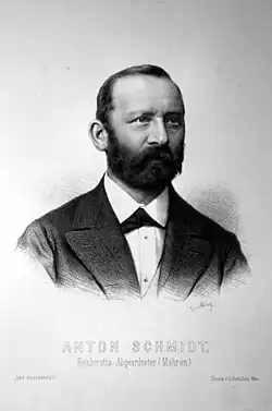 - ↑ a b c d e f g h Österreichisches Biographisches Lexikon 1815–1950. Bd. 10. Wien: [s.n.], 2003-2011. Dostupné online. ISBN 978-3-7001-3213-4. Kapitola Schmidt, Anton (1826-1892), Fabrikant und Politiker, s. 242. (německy)