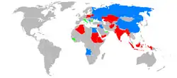 Uživatelé An-12 (vojenští červeně, civilní zeleně a obojí zároveň modře)