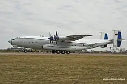 Antonov An-22A přistává na letišti po splnění mise, 2007.