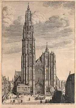 - ↑ PROSPECTVS TVRRIS ECCLESIAE CATHEDRALIS, BEATISSIMAE VIRGINIS MARIAE DEI-PARAE, ANTVERPIAE, OCCIDENTEM VERSVS