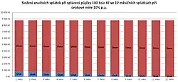 Složení anuitních splátek při splácení půjčky 100 tisíc Kč ve 12 měsíčních splátkách při úrokové míře 10% p.a.