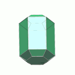 ![]() Oboustranně ukončený krystal v kalcitu z lokality Yates mine v Kanadě | |