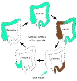 - ↑ Randal Bollinger R, Barbas AS, Bush EL, Lin SS, Parker W. Biofilms in the large bowel suggest an apparent function of the human vermiform appendix. Journal of Theoretical Biology. December 2007, s. 826–31. doi:10.1016/j.jtbi.2007.08.032. PMID 17936308.