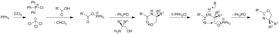 - ↑ Rolf Appel. Tertiary Phosphane/Tetrachloromethane, a Versatile Reagent for Chlorination, Dehydration, and P-N Linkage. Angewandte Chemie International Edition in English. 1975, s. 801–811. doi:10.1002/anie.197508011.