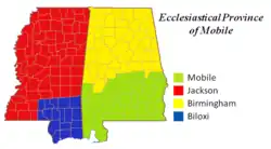 Jde o metropolitní arcidiecézi, která zahrnuje území států Alabama a Mississippi a jíž jsou podřízena tato sufragánní biskupství: