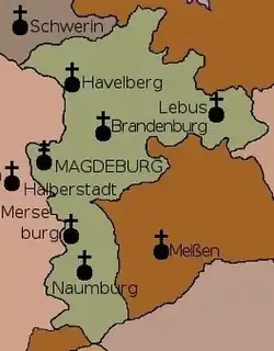 - ↑ a b diecéze magdeburská: Überblick über die Historie und Vorgeschichte diecéze magdeburská vom Frühmittelalter bis heute 777–1994 Archivováno 12. 4. 2020 na Wayback Machine..