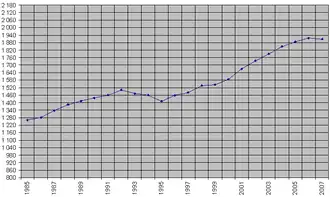 | 1985 | 1 260 | 1993 | 1 473 | 2001 | 1 668 |
