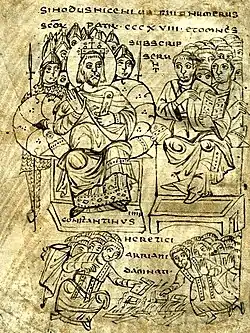 Ariánství bylo odsouzené prvním ekumenickým koncilem v Nikaji roku 325 jako hereze – odchylné učení, jež popírá božství Ježíše Krista. Ariánské učení dostalo v raném středověku politický význam: jako je Kristus (církev) a Duch svatý (vzdělanost) podřízen Otci, je také církev plně podřízena panovníkovi jakožto otci. V této podobě ariánství převládalo u germánských kmenů až do 7. století a jeho politická stránka znovu oživla v boji o investituru ve vrcholném středověku.