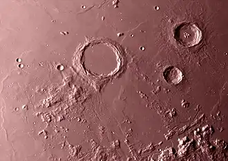 V okolí kráteru se nachází několik sekundárních kráterů.[1] Ty byly označeny podle zavedených zvyklostí jménem hlavního kráteru a velkým písmenem abecedy.