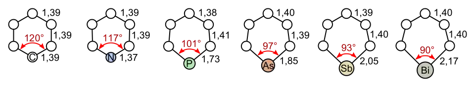 - ↑ a b c A. J. Ashe. The Group 5 Heterobenzenes. Accounts of Chemical Research. 1978, s. 153–157. doi:10.1021/ar50124a005.