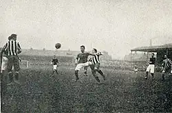 Woolwich Arsenal (v tmavých dresech) hrající proti Newcastelu United (pruhované dresy) v semifinále FA Cupu;— První semifinále klubu – na Victoria Ground, ve Stoke