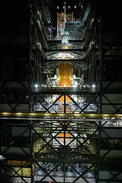 - ↑ Artemis I Moon Rocket Arrives at Launch Pad Ahead of Historic Mission – Artemis. blogs.nasa.gov [online]. [cit. 2022-11-04]. Dostupné online. (anglicky)