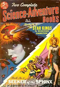 Obálka časopisu Two Complete Science-Adventure Books z roku 1951 s autorovou povídkou Seeker of the Sphinx (Hledač sfingy).