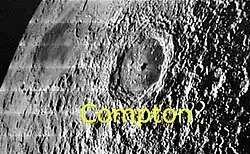Měsíční kráter Compton, 55.3° s. š. /103.8° v. d.