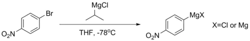 Ze sloučenin jako je p-bromnitrobenzen nelze přímou reakcí získat stabilní Grignardova činidla, protože jsou jejich aromatická jádra příliš deaktivovaná. V takových případech se obvykle připravují pomocí reakce s isopropylmagnesiumchloridem při -78 °C. Reakce probíhá díky tomu, že pKa aromatických protonů je nižší oproti alifatickým protonům (přibližně 45 místo 50). Takto získaná Grignardova činidla se používají ihned po přípravě, aby se zabránilo jejich rozkladu.