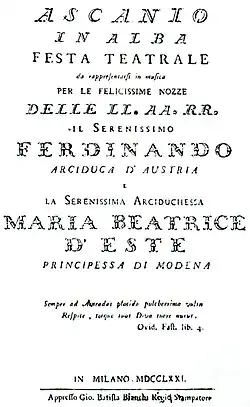 Opera má dvě dějství. Objednala si ji rakouská císařovna Marie Terezie k příležitosti svatby svého syna arcivévody Ferdinanda Karla s modenskou princeznou Marií Beatricí Estenskou.