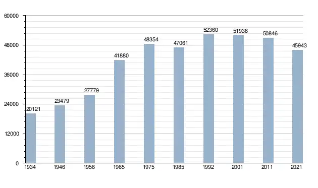 K 15. září 2024 ve městě žilo 50 788 obyvatel a bylo zde trvale hlášeno 59 030obyvatel.[3]