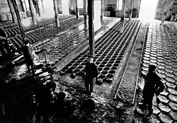 Horníci pracovali v akordu. Každý horník musel denně naplnit jedenáct nákladních vozů, což odpovídalo asi 5,5 t horniny, kterou bylo třeba do vozů ručně naházet. Až do roku 1973 se k tahání nákladních vozů používali důlní koně,[15] kteří z hlavní štoly, která vedla mírně z kopce, tahali soupravy po osmi vozech. Stáje byly umístěny na povrchu. Poslední kůň opustil důl v roce 1973 Od roku 1971 se používaly také lokomotivy. Jižní část byla uzavřena v roce 1974 po sesuvech půdy a vniknutí vody. Východ byl uzavřen v roce 1976.[4]