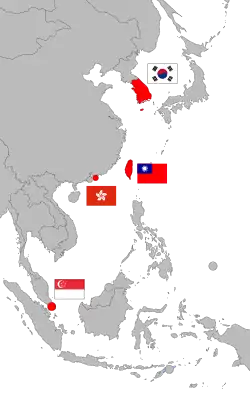 Pojem asijští tygři (ve smyslu asijští ekonomičtí tygři, také asijští draci) označuje čtyři nově industrializované asijské země s rychlým hospodářským růstem: Hongkong, Jižní Korea, Singapur, Tchaj-wan. Všechny země prošly rapidní industrializací od začátku 60. let 20. století. Hongkong a Singapur jsou jedny ze čtyř největších finančních center světa.[1] Jižní Korea a Tchaj-wan jsou světovými vůdci ve výrobě elektroniky a technologických inovacích, sídlí zde největší technologické společnosti. Jižní Korea je také nejvíce automatizovanou ekonomikou na světě.[2] Dnes MMF země pravidelně uvádí na seznamech nejvíce prosperujících a stabilních ekonomik. Ekonomický úspěch asijských tygrů inspiroval řadu dalších jihovýchodních asijských zemí, např.: Indonésie, Malajsie, Filipíny, Thajsko a Vietnam. Označení ekonomický tygr se v současnosti používá jako obecný termín pro státy s nadprůměrně rostoucí ekonomikou.[3][4][5] Podobně označované skupiny nebo ekonomiky jsou například: Baltští tygři, Keltský tygr, Golfský tygr.
