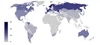 Podle průzkumu společnosti WIN-Gallup International z roku 2012 v 57 zemích světa se za ateisty považuje 13 %, za nenáboženské lidi 23 % a za náboženské 59 % lidí. Největší podíl ateistů je v Číně, Japonsku a ČR (47 %, 31 %, 30 %), nenáboženských lidí v Austrálii a ČR (48 %), dále v Irsku, Rakousku a Nizozemí (44 %, 43 %, 42 %).[26] Vysoký podíl ateistů je také v Belgii, Estonsku a všech skandinávských zemích (Švédsko, Norsko, Dánsko, Finsko).[27][28]