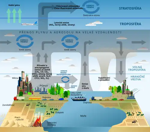 Vliv na chemii atmosféry mají především chemické látky a jejich vzájemné reakce probíhající ve dvou nejnižších vrstvách atmosféry: