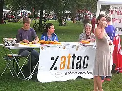 Stánek rakouského Attacu na Volksstimmefestu ve Vídni