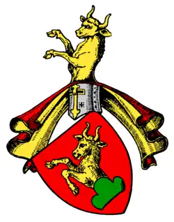 Původním erbem byl zubr. Postupně přibyla tzv. polepšení a dědictví v dalších polí štítu (lvů a orlic) hraběcího a knížecího znaku.