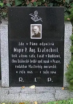 - ↑ a b SLABÝ, F. Msgre. Augustin Kratochvíl.. Vlastivědný věstník moravský. 1946, roč. 1, čís. 1, s. XXII–XXV. Dostupné online. ISSN 0323-2581.