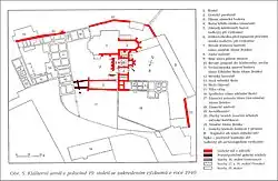 K roku 1350 doložený kostel Panny Marie, ke kterému byl klášter přenesen, byl později přesvěcen na kostel svatého Václava. Podle archeologického výzkumu se kolem původního kostela nacházel i hřbitov. To se změnilo, když byl v letech 1377–1401 klášter přestavěn. Nový klášter augustiniánů se rozléhal na téměř celé ploše dnešního Jiráskova náměstí.