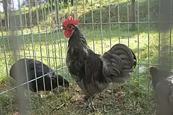 Nápadné je především díky namodralému černému peří.[1] Existují ve třech variantách: celé černé (až na zobák, nohy a hřeben), bílé a namodralé.