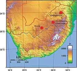 - ↑ V současnosti je území součástí Jihoafrické republiky