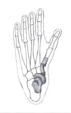- koncové články prstů ruky opatřené drsnatinou pro masitá bříška (tuberositas phalangis distalis) jako u lidí - odlišně od starších australopitéků i moderních lidoopů