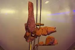 Částečně dochovaná kostra, patřící patrně samci byla nalezena v roce 1987. Tvoří ji zlomky lopatky, klíční kosti, pažní, vřetenní i loketní kosti, třetího žebra, hrudních a bederních obratlů, křížové a pánevní kosti. Nedaleko od kostry byly zachyceny i jednotlivé zuby, které mohou patřit témuž jedinci podobně jako zlomek mozkovny, záprstní i nártní kůstky.[65] Zajímavé je, že bederní obratle nesou patologické stopy, odpovídající nákaze brucelózou, což by naznačovalo konzumaci živočišné stravy.[47]
