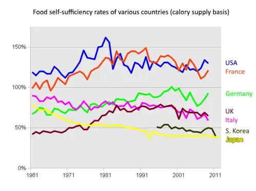 - ↑ http://www.fao.org/3/i2493e/i2493e03.pdf Archivováno 7. 6. 2019 na Wayback Machine. - FAO, Aggregate agriculture, Caloric self-sufficiency ratio