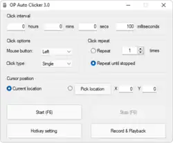 AutoClick, nebo také AutoClicker se nazývá program který spouští skript, který automaticky udává systému informaci o myši. Většinou má velké možnosti nastavení a je velmi rychlý.