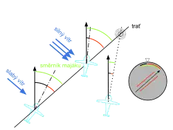 Využití ARK k eliminaci snosu bočním větrem. Trať je zadána směrníkem majáku.
