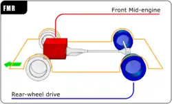 Tato koncepce využívá motor umístěný za přední nápravou - tedy vpředu uprostřed a zadní náhon. Označuje se zkratkou FMR z anglického Front-Mid engine Rear whell drive. Tuto koncepci využívají například modely Aston Martin DB9/Vantage/Vanquish/One-77, BMW Z4, Honda S2000, Mercedes-Benz SLS AMG...